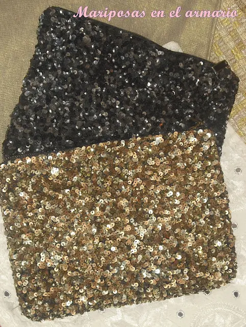Llegué a la caja ya casi sin uñas, porque estaban en los clutch bolsosdemanodelentejuelas y bueno dije, me llevo el más baratichi, (ja! no me lo creía ni yo), le dije a la chica de la caja vengo a devolver esto y.... ¿me podrías decir el precio de los tres?, la chica me dijo "ah! pero quedaban??" y yo con una sonrisa de oreja a oreja dije ziiiiiiiii, me dijo 15,95€ el negro de lentejuelas, 15,95€ el dorado de lentejuelas y 15,95€ el sobre de tachuelas, yo dije uuuuuuuuhm, pensemos "pues me llevo estos que brillan" y ella me dijo, jo! pues el de tachuelas está tirado y estaba agotado, entonces, dije mirando a los lados y en bajito "ponme los tres y que parezca un accidente"