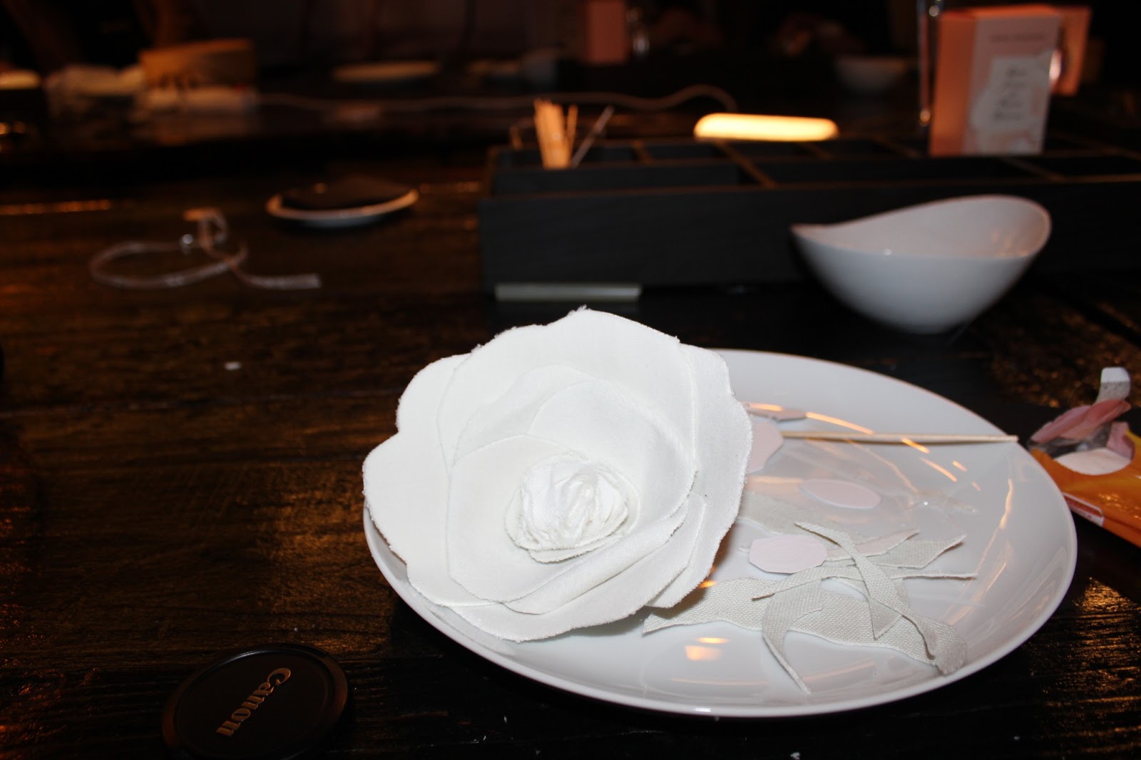 En un taller muy chulo, hicimos la versión de la rosa blanca de cada uno que convertimos en broche y perfumamos con Agua fresca de rosas blancas, yo la tengo puesta en la entrada de mi casa y huele nada más abrir la puerta de la calle ☺.